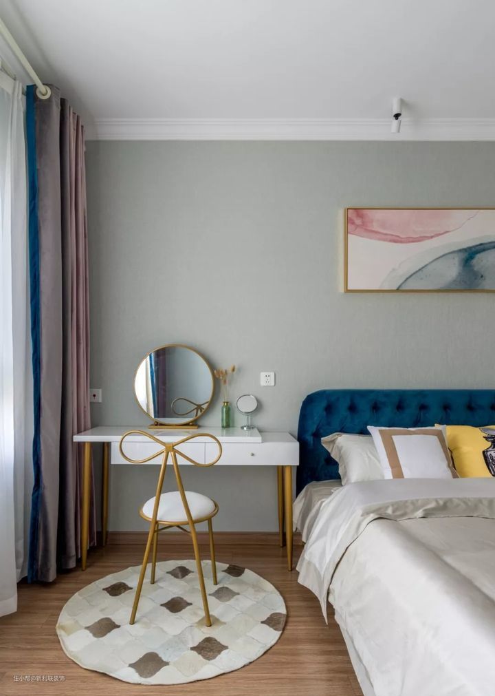 ▲ 梳妆台造型优雅端庄,配合一大一小两面梳妆镜,加上一款蝴蝶结靠背椅,打造了一个好看又实用的梳妆空间。