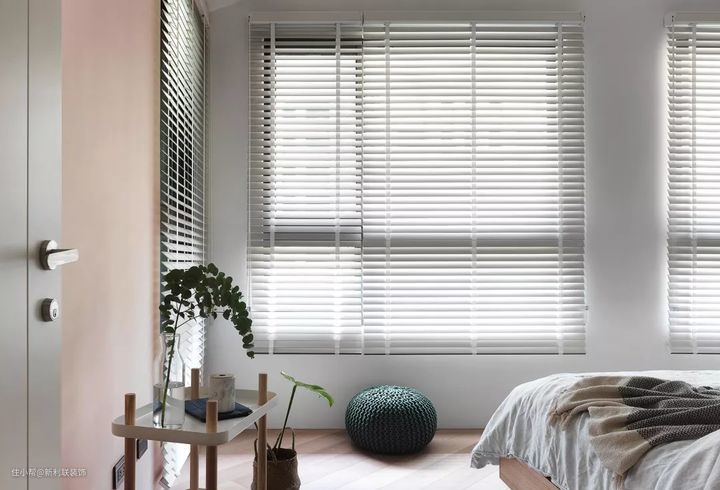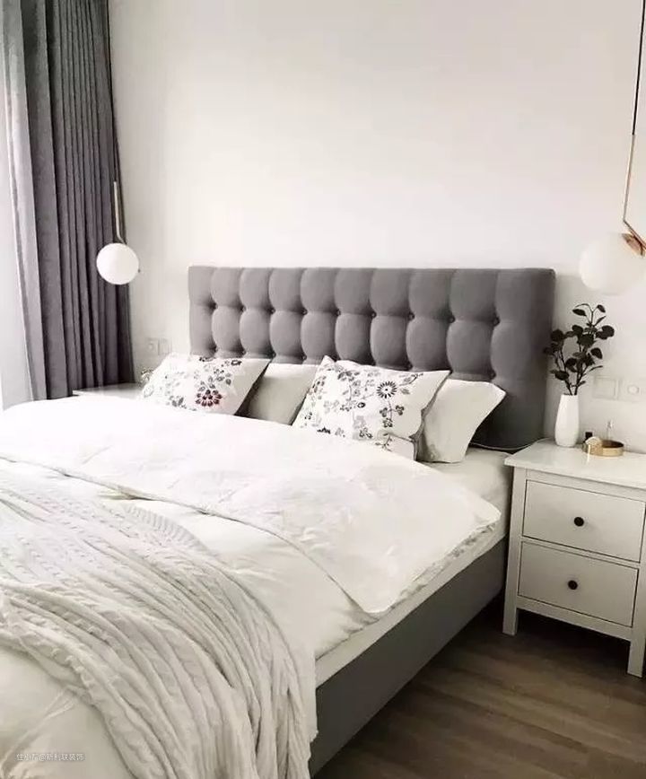 ▲ 卧室简单干净舒服,大面积白色系为主,搭配18年流行色系高级粉的抱枕和装饰画,温馨又有情调。