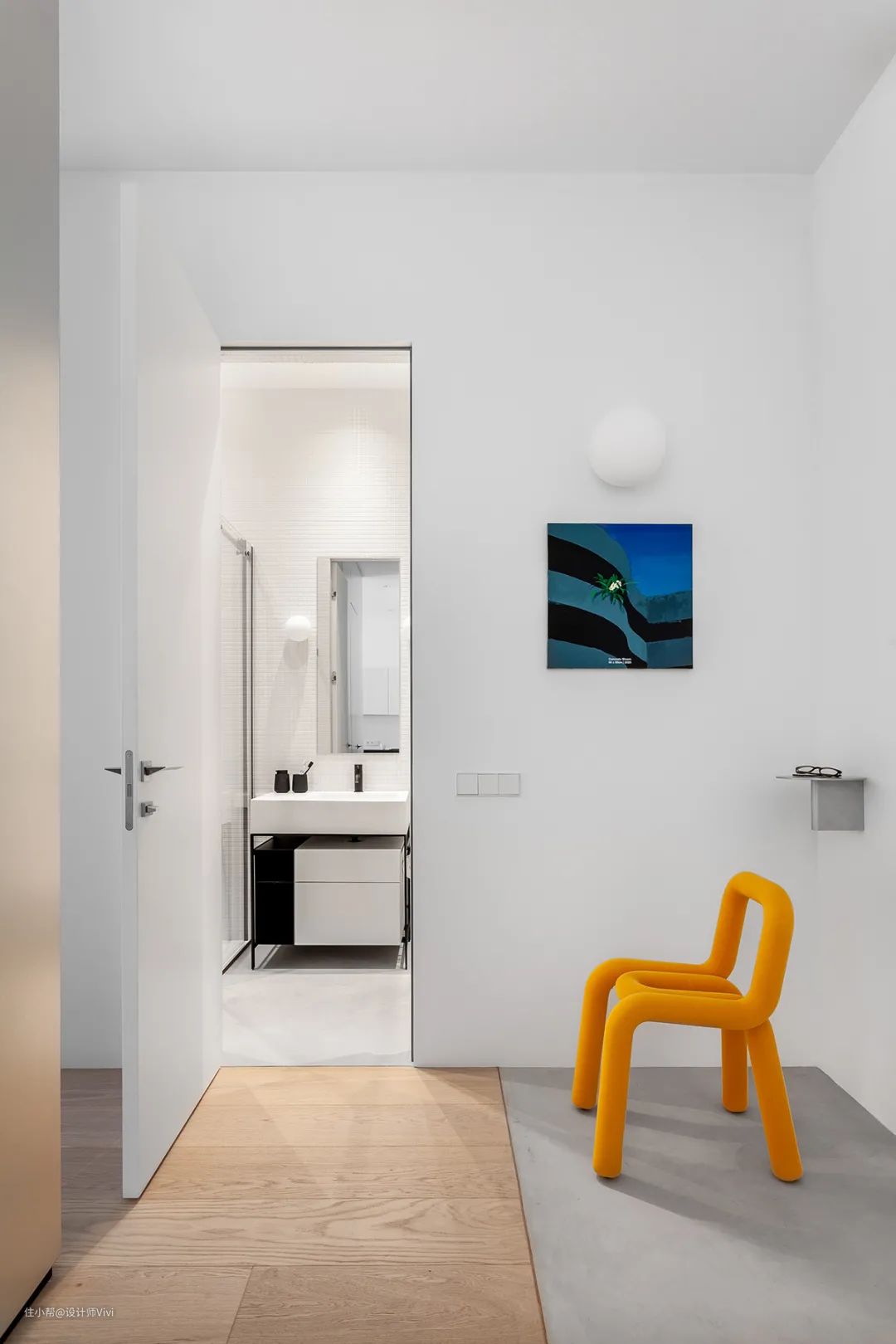 ▲看到这个铝板的柜体了吗?它其实就是衣帽间的一部分,一侧在公共区域,一侧在卧室区域,以此串联两部分空间,这样的方式你喜欢吗?