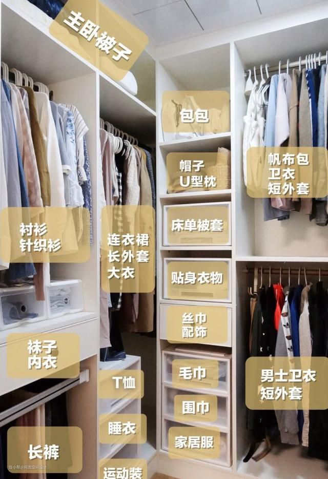 - 被褥区:建议放在衣柜最上面,因为不经常使用,拿取不方便。