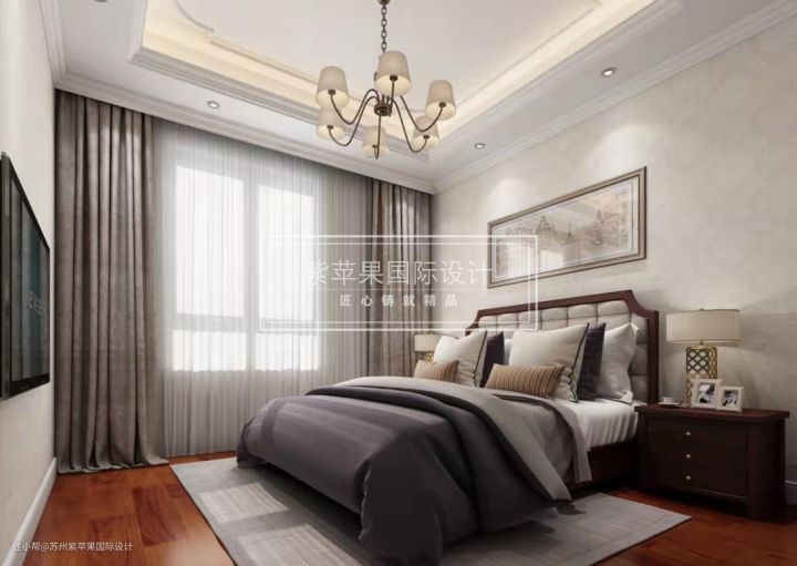 卧室的窗帘是专门为主人设计的。温暖、浪漫、私密的卧室空间,除了装饰功能外,窗帘主要是保护隐私和调节光线。