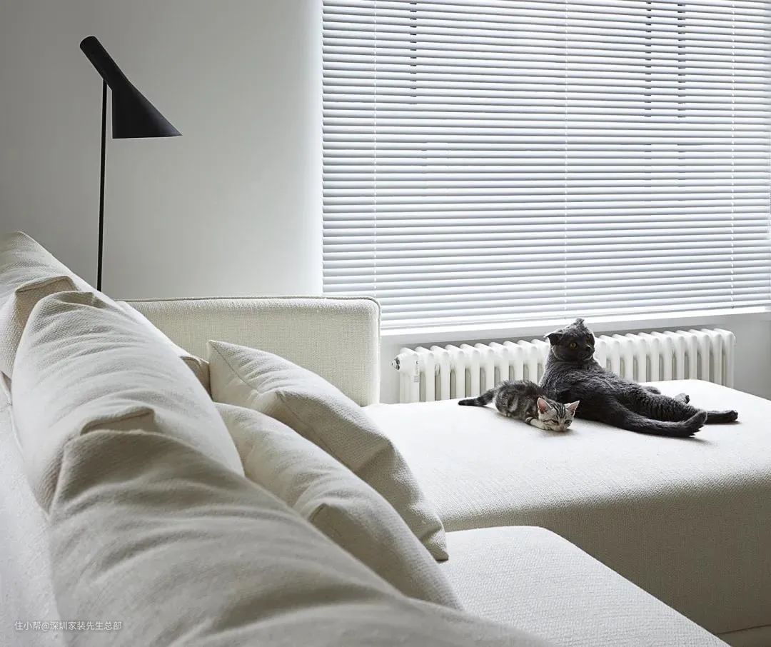 猫主人有足够的空间躺下,凸窗和沙发是晒太阳的好地方。