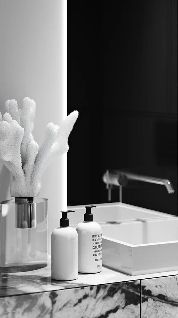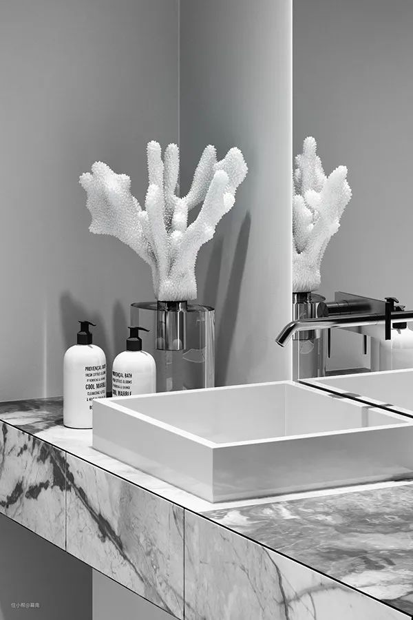 卫生间中大理石材质增添了空间的精致感,简雅而素淡,展现了与众不同的艺术美感。
