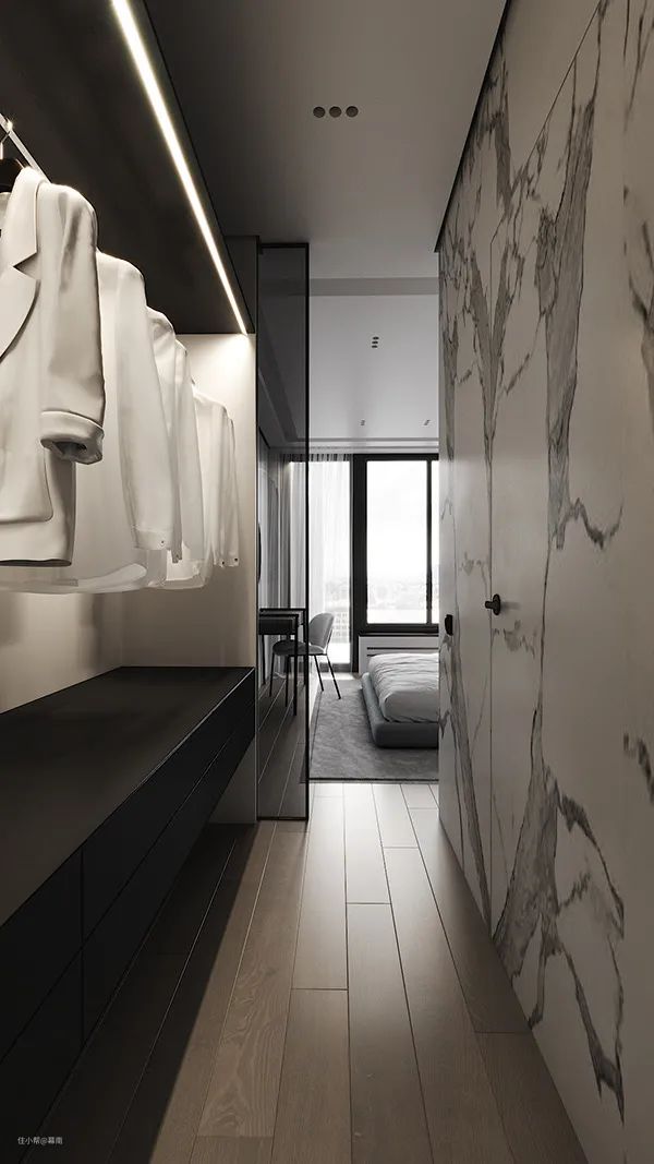 衣帽间与卧室相连,也是延续了极简的设计风格,呈现了与众不同的高级感。