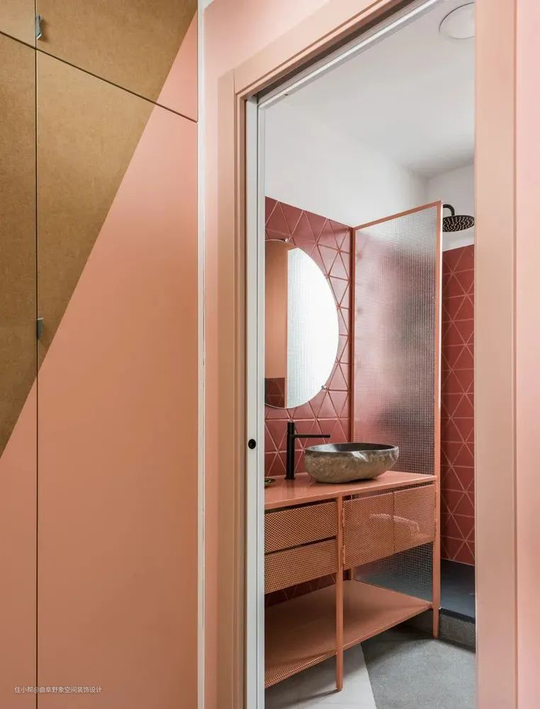 同步于明亮醒目颜色在墙和家具上的更多使用,卫生间也开始大胆拥抱色彩,但方式更加优雅。洗手间不再一定是白晃晃的了!建筑师与设计师正通过亮粉、金黄、海军蓝、橄榄绿之类的颜色点亮这些基础空间的情绪氛围。
