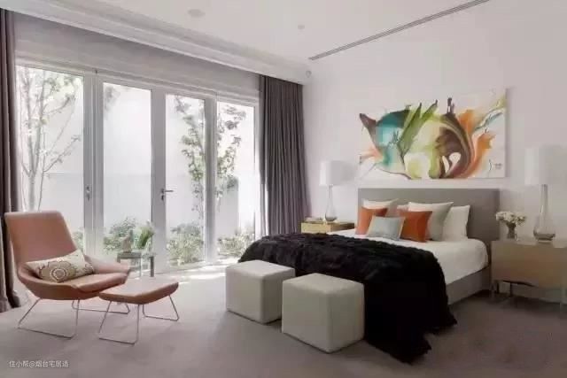 怎么挂最适合:挂画以床为基准,两边离床各30cm,挂画下沿离地至少140cm,这样可以组成一个黄金分割比例,整个床头画面协调。