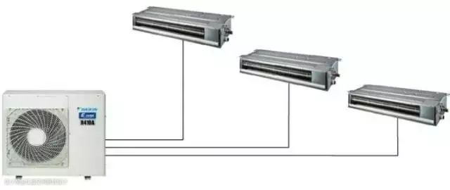 从外观来讲,空调只需要一台室外机就能连接多台内机,也可以成为【一拖N】。比如两房厅的小户型需要三台室内机,就可以一拖三。(不建议厨房安装,油烟大会影响使用寿命。)