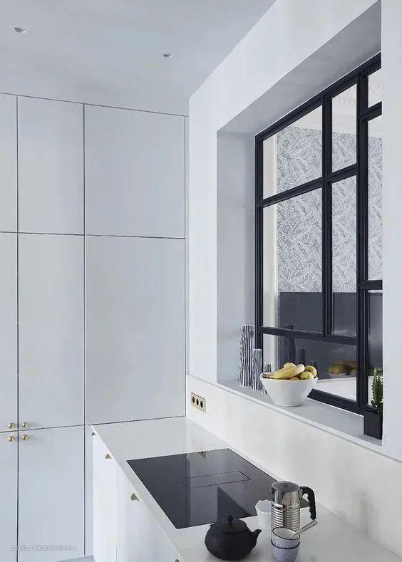 怀旧画风室内窗:嵌于墙体之中的窗户,最初是为了优化室内采光而设计出,当室内窗与厨房相结合后,也有了异曲同工之妙。