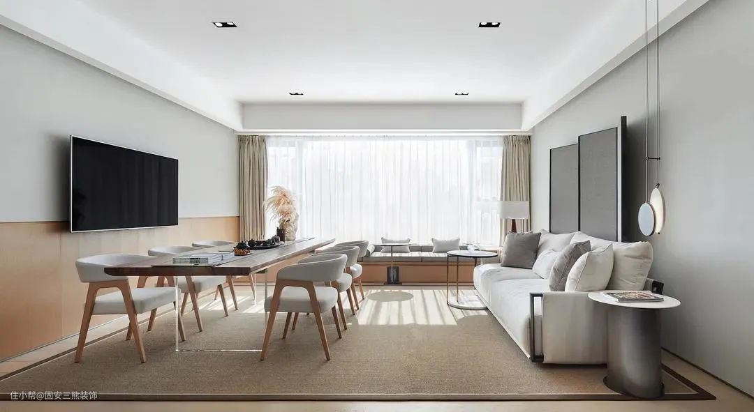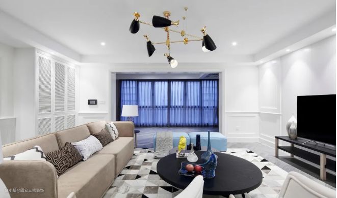 无主灯设计可以做满吊顶,以便于嵌入式灯具安装。首选射灯不选筒灯,射灯是聚光的,灯光效果会更有层次感。射灯可以做局部点缀,也可以做主照明作用。