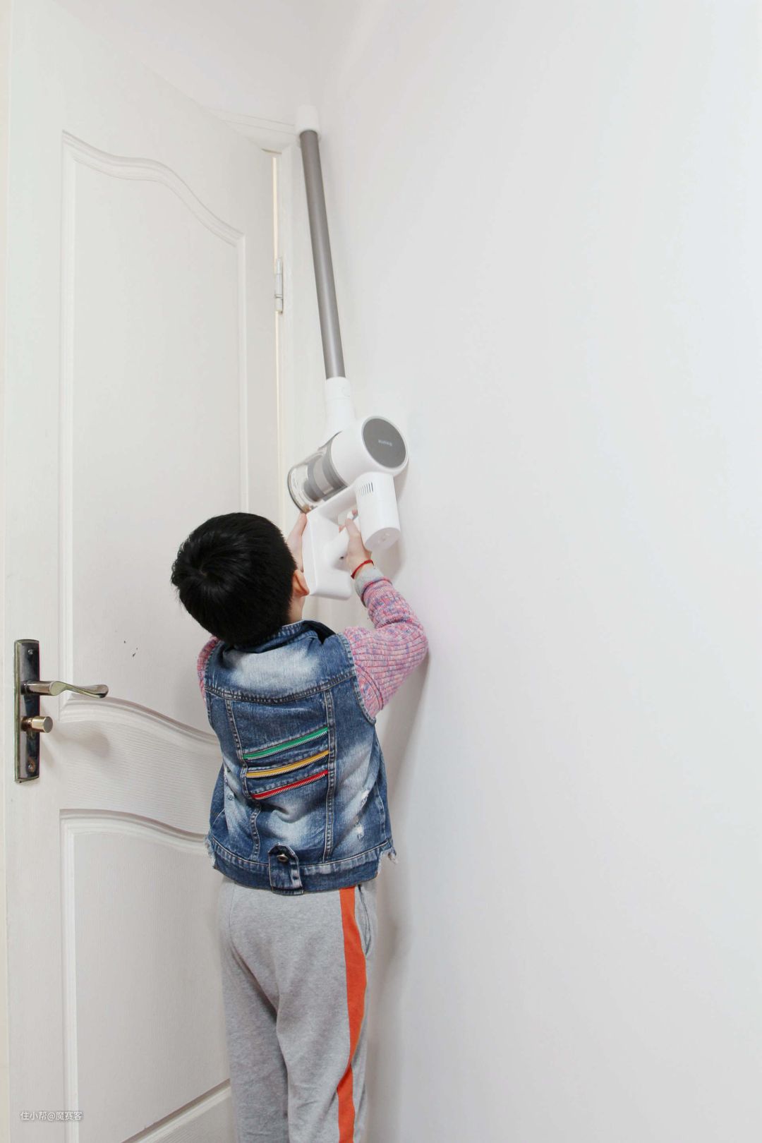 ▲幼儿园的小朋友都能轻松的举起来吸附墙上的灰尘,当然,这也是因为主机很轻,后文会说到。