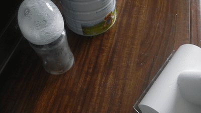 ▲宝宝奶粉罐旁洒落的粉末清理起来十分轻松,而其全链条的8重降噪设计,让机器轻声运行,不必担心会对宝宝的听力造成损伤。