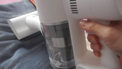 ▲同时,吸尘器的操控也很简单,简单到幼儿园大班的小朋友都能自己操作,T10的调速按钮提供由弱到强三档吸力;手柄内侧的开关扳机按住启动,松手即停,另外,当我们按住扳机后单击调速按钮下的电子锁即可切换成连续工作模式。