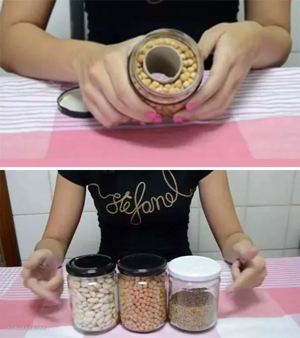 ▼把卫生纸筒装进罐装豆子里,还可以藏东西,完全看不出来有木有!
