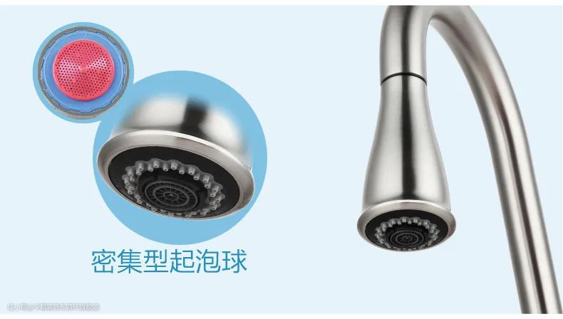 带有起泡器的龙头,出的水不是那种很激烈的水柱,而是混空气后比较柔密的水流,这样一来龙头不容易向外溅水,还能大大减少用水量。
