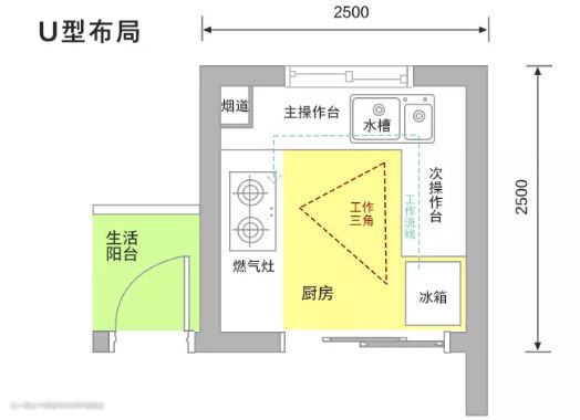 U字型厨房可以分为宽U字和窄U字,布局时注意距离即可。