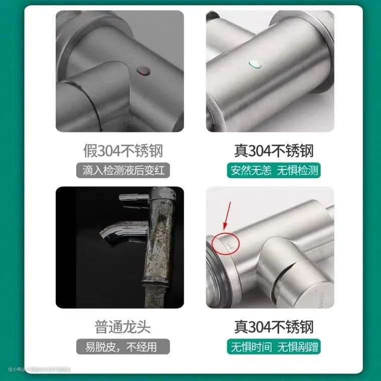 准备一瓶不锈钢识别药水,在水槽的背面滴一滴,等十几分钟,什么材质一清二楚。