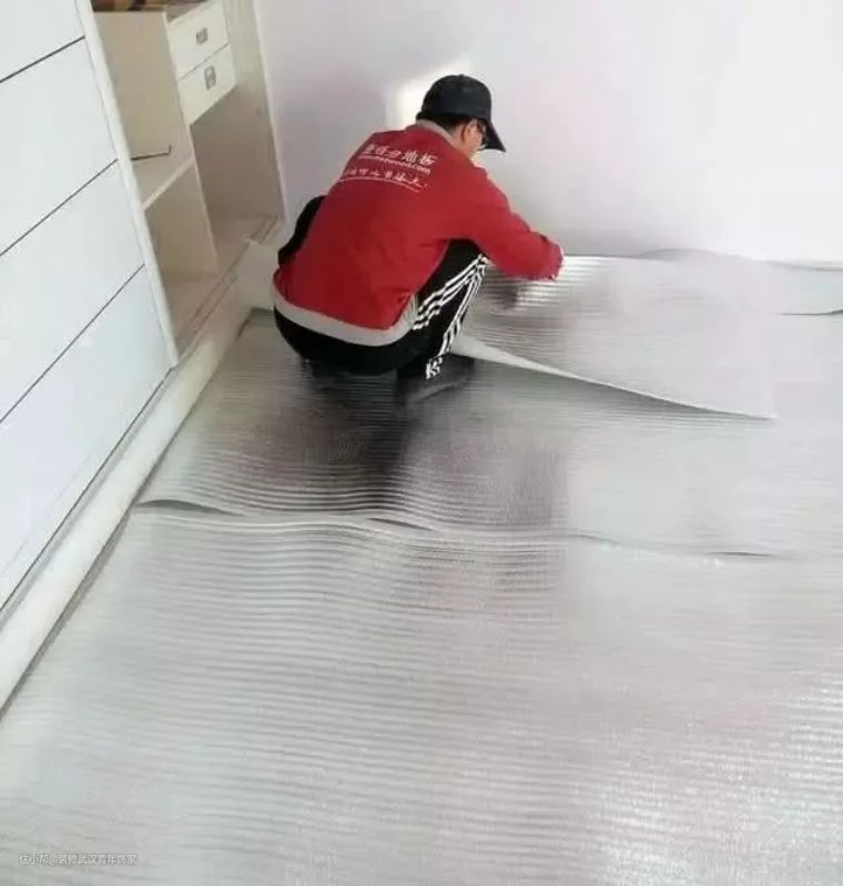 而在铺设时一定要记得将防潮垫铺平,连接处也要注意不可留缝隙不然潮气会顺着缝隙侵袭地板。