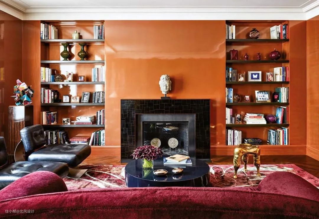 对混搭个性的家居营造,爱马仕橙可谓信手拈来。亚洲风情的屏风,加上轻古典的艺术茶几和复古的田园布艺,以及装饰艺术格调的圆桌设计,还有法式中国风的图案塑造,混搭的元素加载蓝橙这样充满挑战性的互补颜色,瞬间提升了空间设计的画面感和故事性,如果你是民俗文化收藏的爱好者,这种新颖的混搭方式对你说不定有所启发。