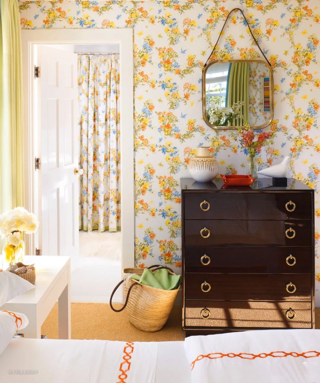 来到卧室,入目花海,繁杂缤纷,色彩在彼此地交汇之间,上演了一番春色撩人的景象。倒不是说爱马仕橙失去了它的主角地位,而是这些喜人的颜色簇拥成新的轮廓,而且更加夺目,光彩四射。