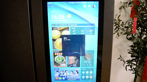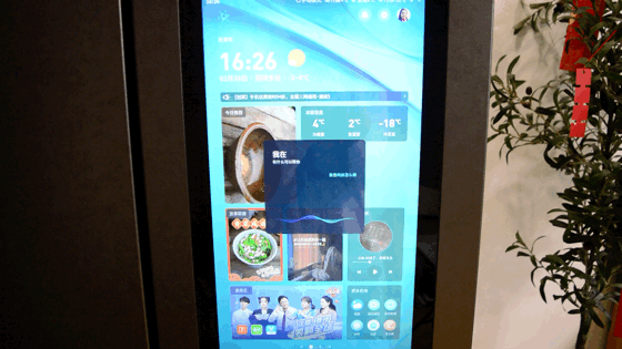 ▼主屏幕上除了显示当前城市的天气和冰箱温度之外,还会推送当日菜谱、音乐、新闻等信息。