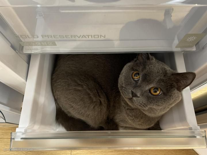 ▼抽屉看似不大,却相当能装,右侧的冷冻保鲜区装下一直十斤重的蓝猫绰绰有余。