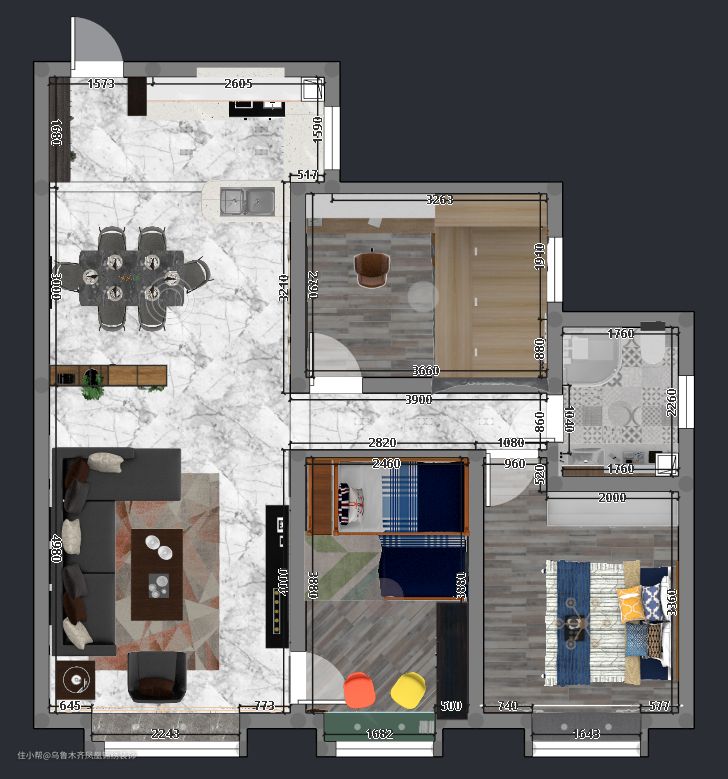 业主需求:夫妻两是90后夫妇,有一对非常可爱的女儿,对自己的爱家有一套独特的理解,男主人从事IT方面,期待可以有一个独立的办公空间,女主人则喜欢烹饪,对厨房的要求比较高,同时两个女儿活泼好动,好奇心强,希望设计师能够设计一个既时尚又同时可以满足家里人需求的房子。