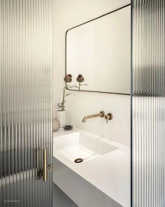 普通玻璃作为隔断不仅“多此一举”,而且不便于日常的清洁打理。而相比于磨砂玻璃的“脏脏感”呢,长虹玻璃在阻挡一定视线的同时又保留了玻璃的光影质感.