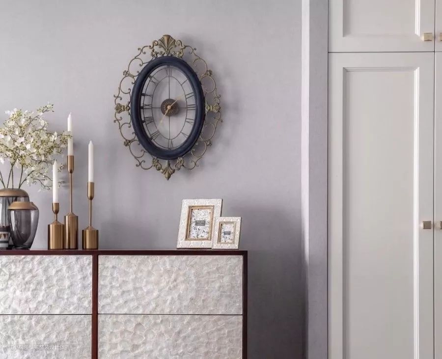 客餐厅定制款柜子是用贝壳镶嵌制成,十分独特的纹理给空间增加了时尚的视觉感受,珍珠般温婉的光亮,让人心情舒畅,沉醉其中。