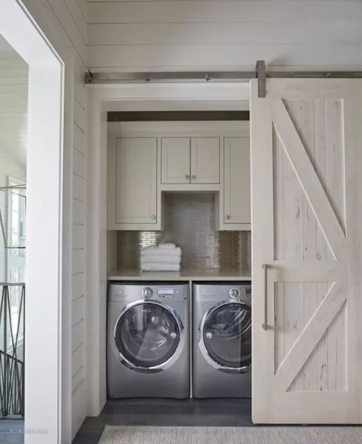 设置洗衣房最好的选择在离卫生间较近的空间,因为这样动线更为方便,在洗完澡后出来可以直接把脏衣服扔进洗衣机清洗,烘干后就可以放入衣柜,让生活简单化。