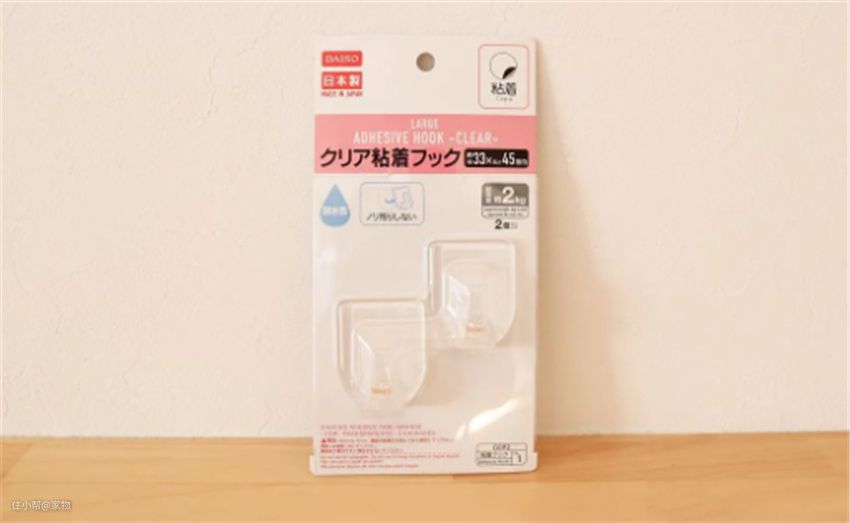 这款粘力钩子看似不起眼,但在生活中非常实用。透明的样式黏贴在哪里都不觉得突兀,承载力足够用来挂小物件。