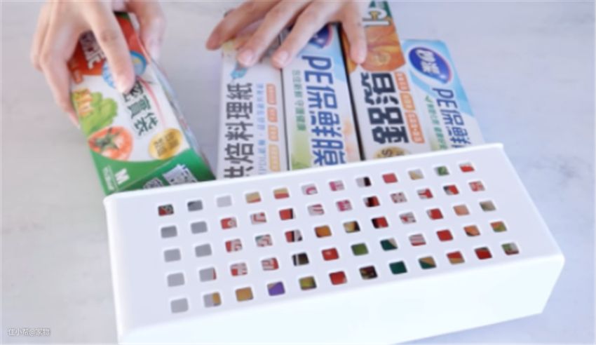 磁铁收纳盒能够吸附在冰箱侧边,平时放置塑料袋保鲜膜或者厨房内常用物品,方便拿取又省地。