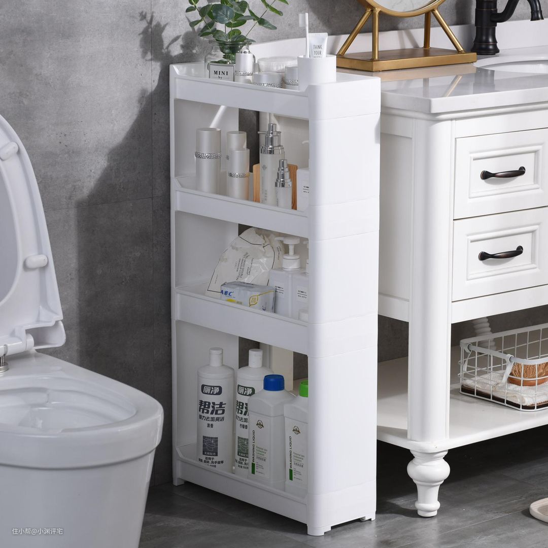 这个东西我真的是要一生推了,它可以弥补我们装修时由于尺寸测量不精确留下的各种遗憾。像冰箱和橱柜之间、马桶和洗手台之间、马桶和墙面之间,都有可能留下一道缝隙。角落置物架的用处,就是把这些缝隙重新利用起来。