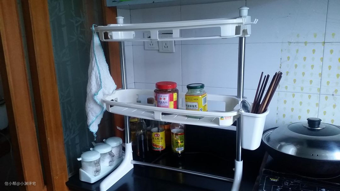 我不喜欢多层置物架的原因很简单:廉价感太足了!几千块钱一延米的台面,搭配看起来不超过十块钱的破架子,怎么看怎么别扭。后来我把置物架藏进了橱柜里,发现还是不好用。两侧的大架子非常占地,还不如直接在柜子里面堆放呢。