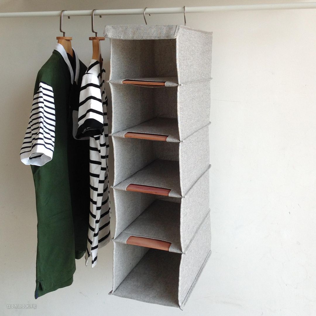 衣柜收纳袋也分好几种,什么收纳袜子的,收纳内衣的,收纳包包的。这些袋子都不好用,原因是太软了——想要拿取东西时,必须一只手拉住旁边的袋子,一只手进去掏。稍不注意,整个收纳袋便缩成了一团。