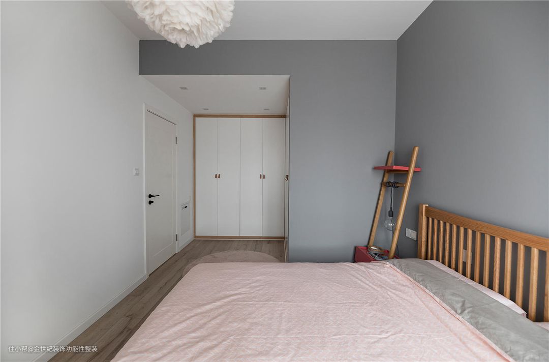 #卧室 #原始户型中这一片区域原本为一个2.2mx2.4m的开放空间和一个3mx3m的房间,改造后将两个空间连接,变成了一个主卧+衣帽间的形式,整个空间不会显得拥挤但又具备大量的储物功能。