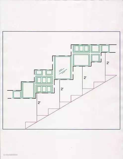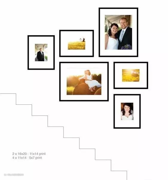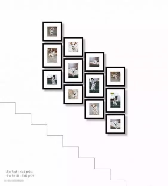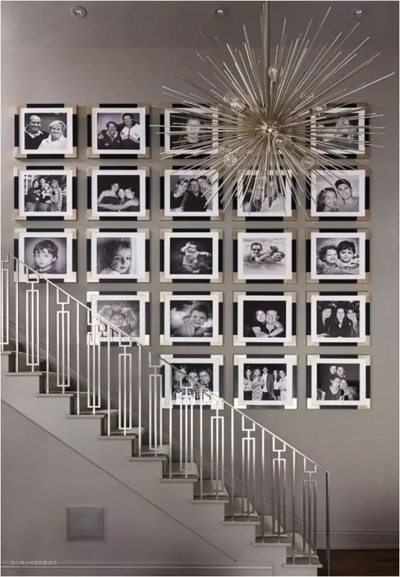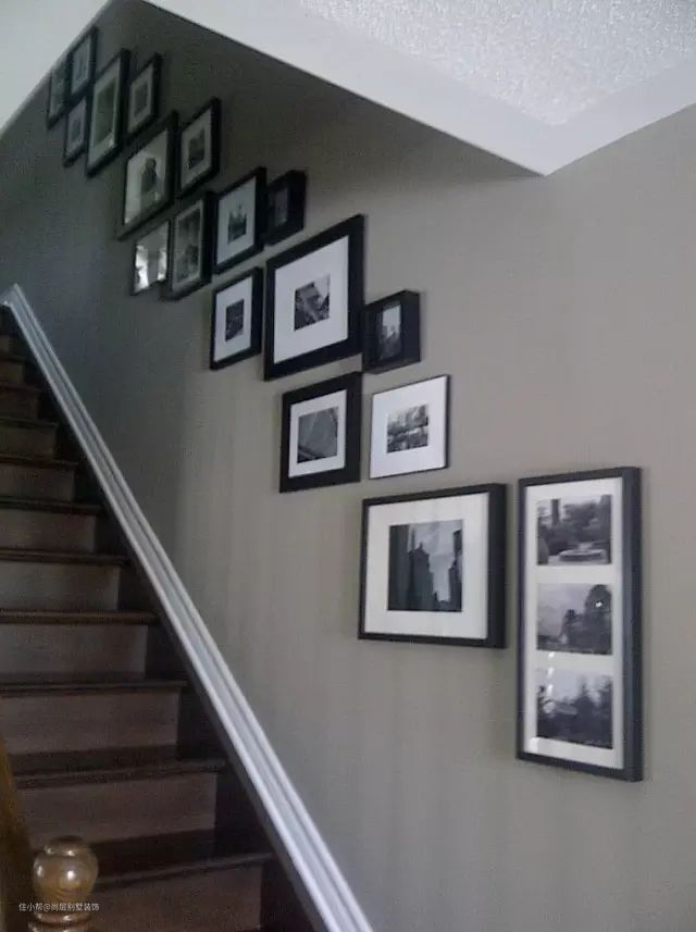 2、尤其是楼梯处,由于其与地面有一定的倾斜度,故在着手制作照片墙时,一定要确保照片墙与楼梯保持整齐有序的节奏;
