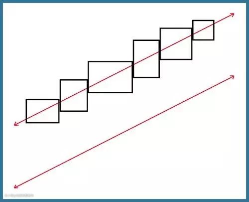 ↑挂画整齐有序,且整体倾斜方向与楼梯成平行线。