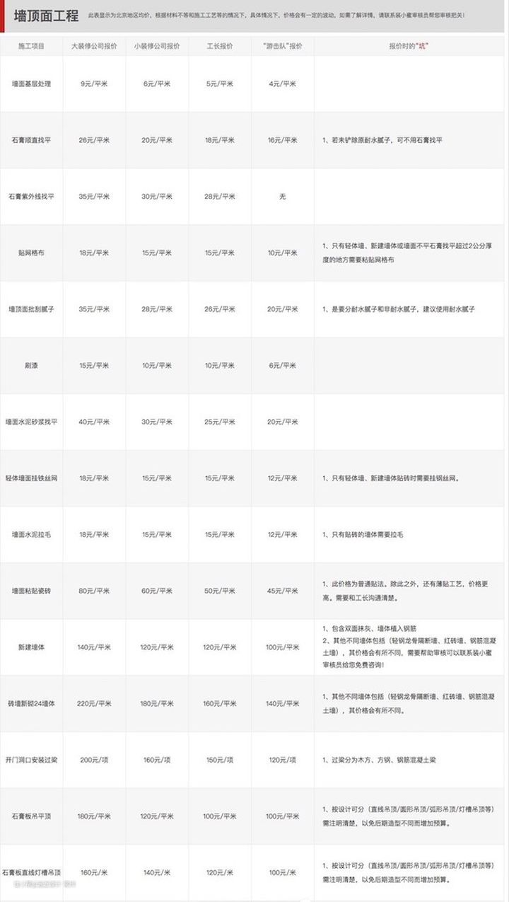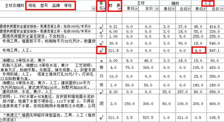 多提一句,像腻子这种辅料,除了确定品牌,最好还要确定型号。比如报价单上写的美巢腻子,如果没确定型号,很可能他指的就是美巢400,而不是美巢800(美巢800的是耐水腻子。400就是非耐水的)。