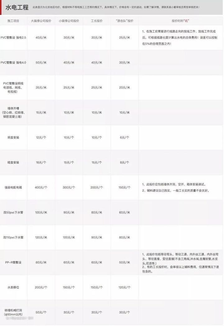 比如最常见的水电改造,一般都会是根据现场报价,最后再根据实际的使用来结算价格。