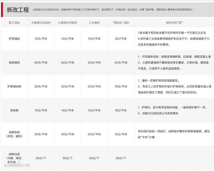 ▲拆改工程报价单参考
