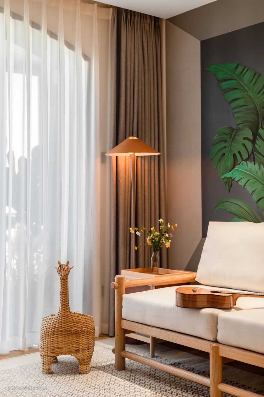 最妙的是起居室背景墙,用不同颜色墙漆制造出空间透视的效果,又是一个内凹的景框。
