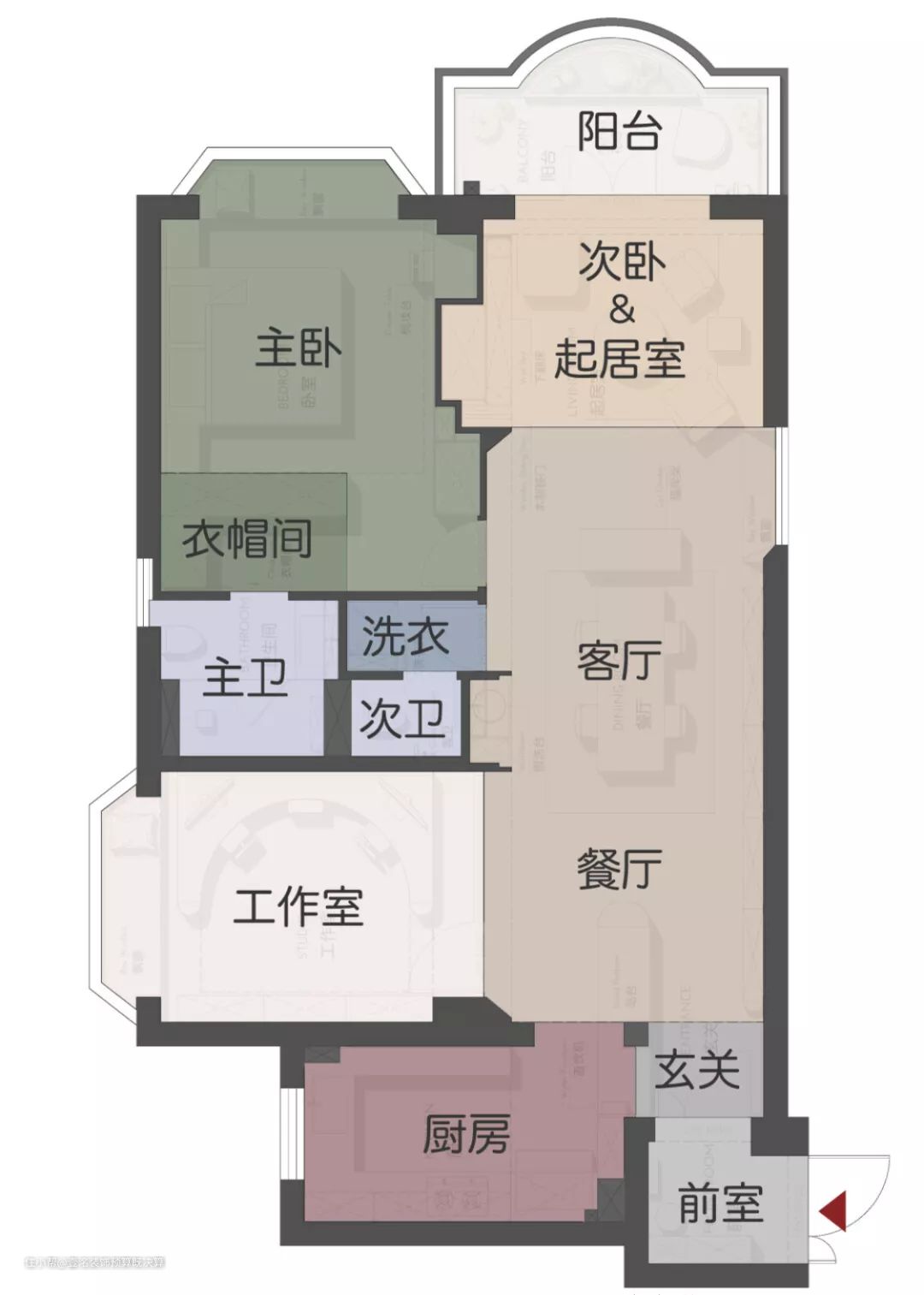 次卧带一个大阳台,主人平时却不怎么用得上,而且也影响了客厅的通风采光。