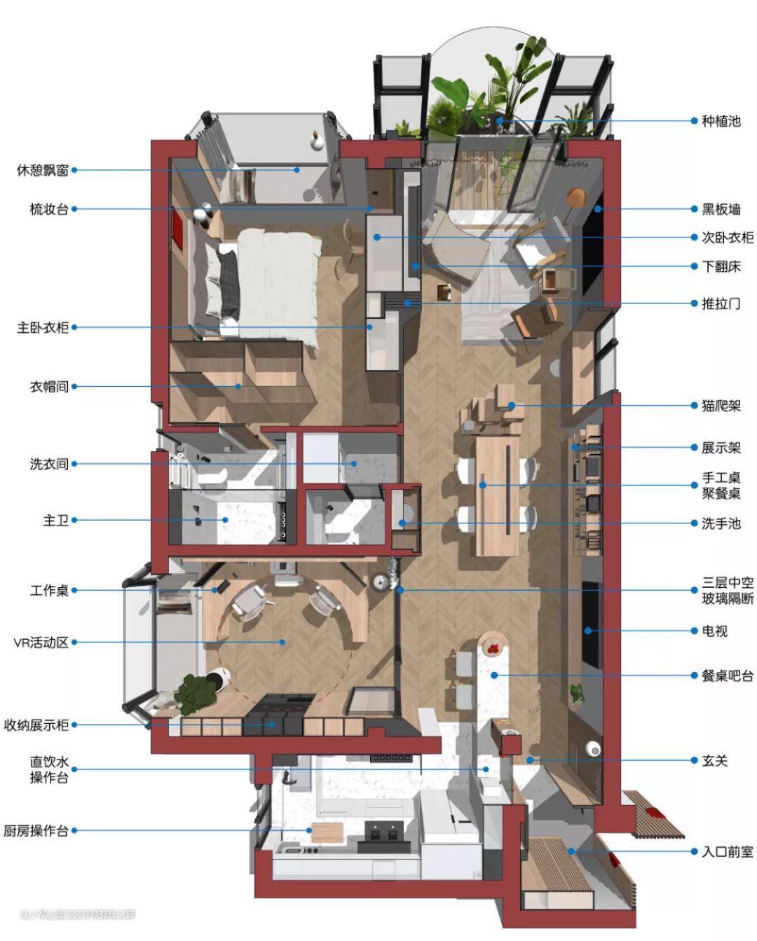 小户型虽小,但有效地利用好空间,不仅能成功逆袭成大空间还能让家更有生命力,今天这套面积85平小户型装修案例,屋主希望设计师可以赋予家更多的可能性,在满足基础功能性的同时,把一些小的细节都考虑的面面俱到,卫生间的设计以及猫猫的活动区域太有爱了。