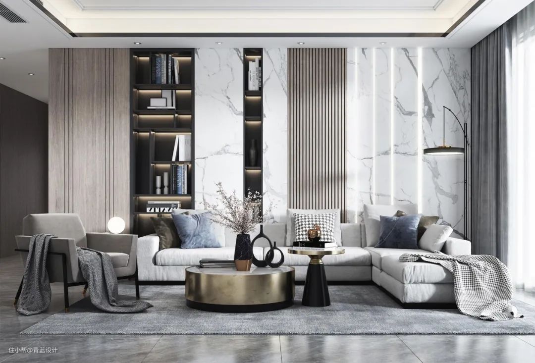 沙发背景墙打造,当然少不了大理石!自带气场和高级感,帅炸了!必须得安排上!