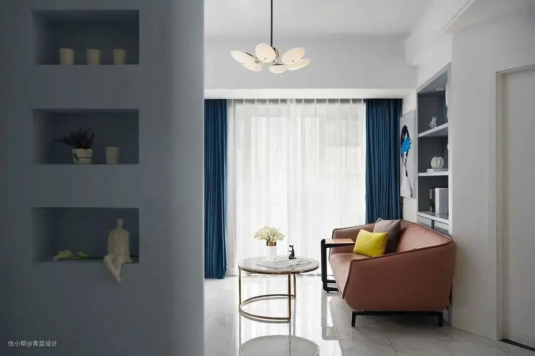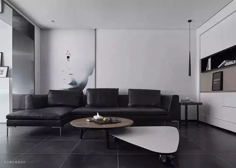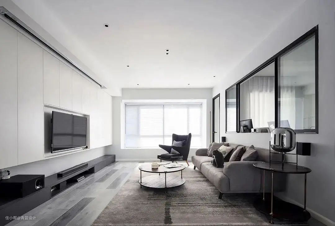 如果家里的客厅采光不好的话,可以试试半墙+玻璃隔断的形式,完美拯救“小黑屋”!