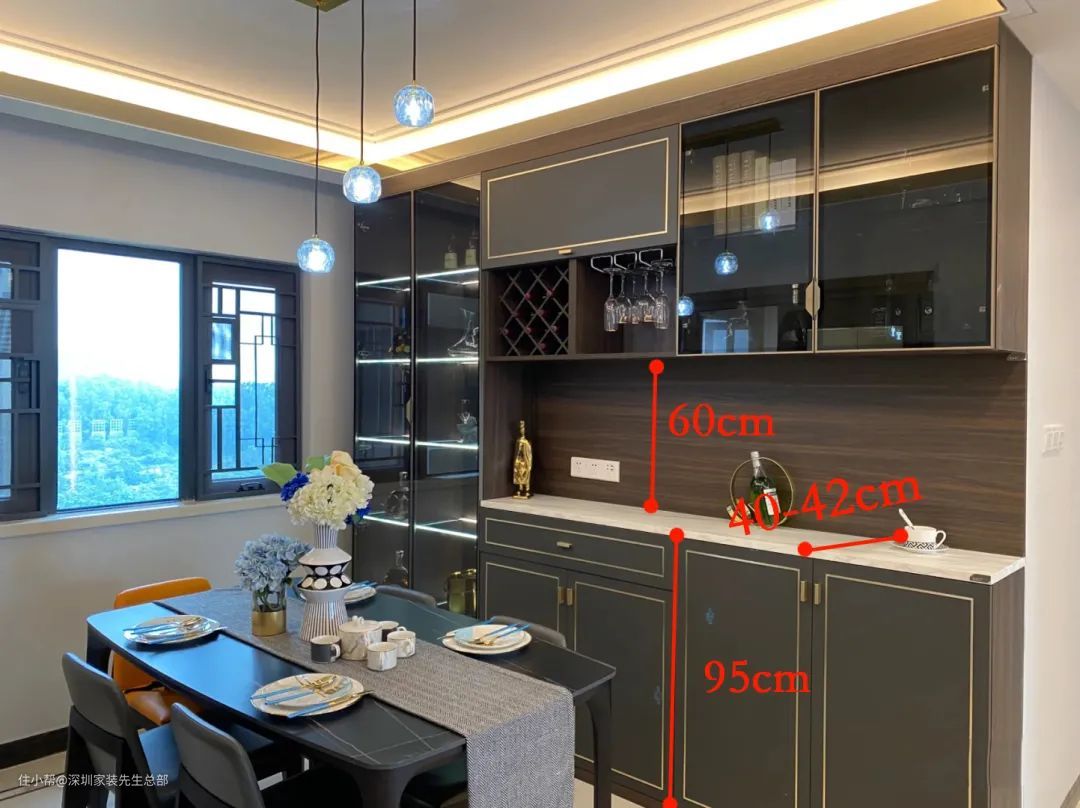① 餐边柜的深度→40~42cm,可以放一些小家电等,且做太深不太美观,显得柜子太大了。