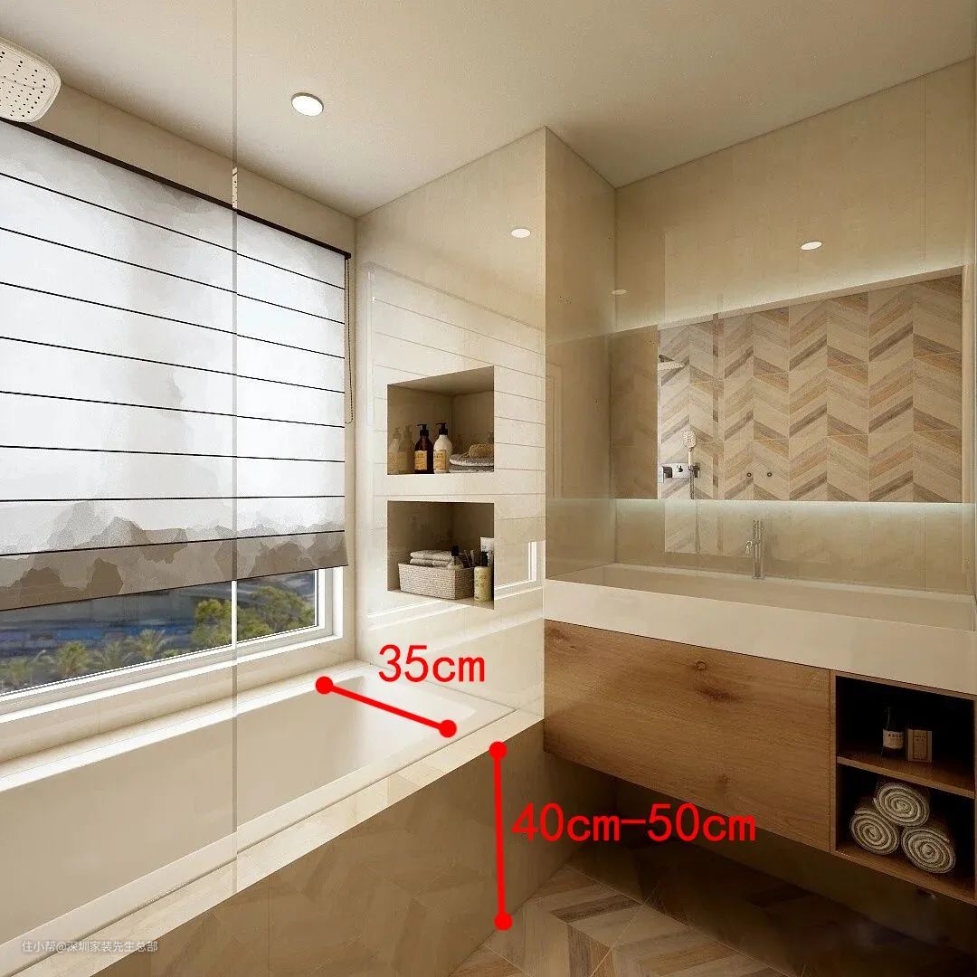 浴缸高度建议40cm~50cm,深度35cm左右,长度根据具体身高来考量啦~