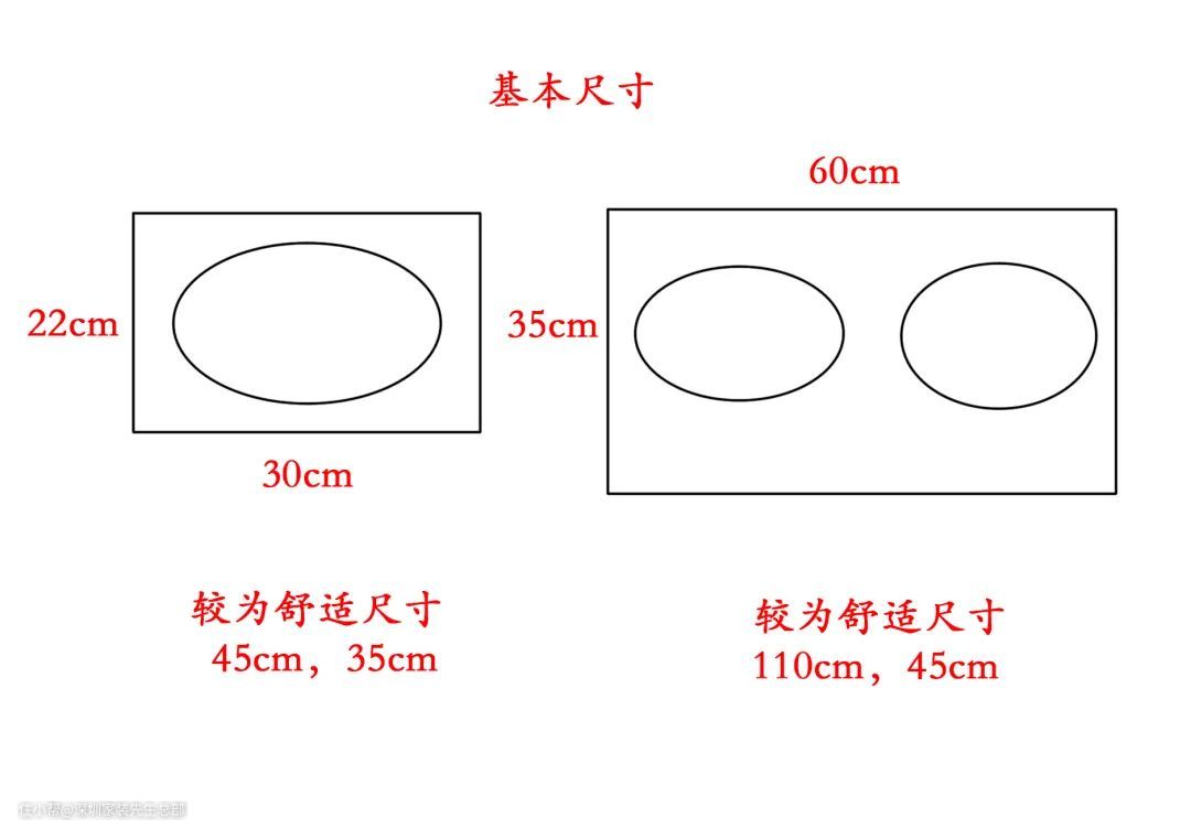 比较舒服的尺寸 → 长110cm,深度45cm,可以存放部分洗漱用品。