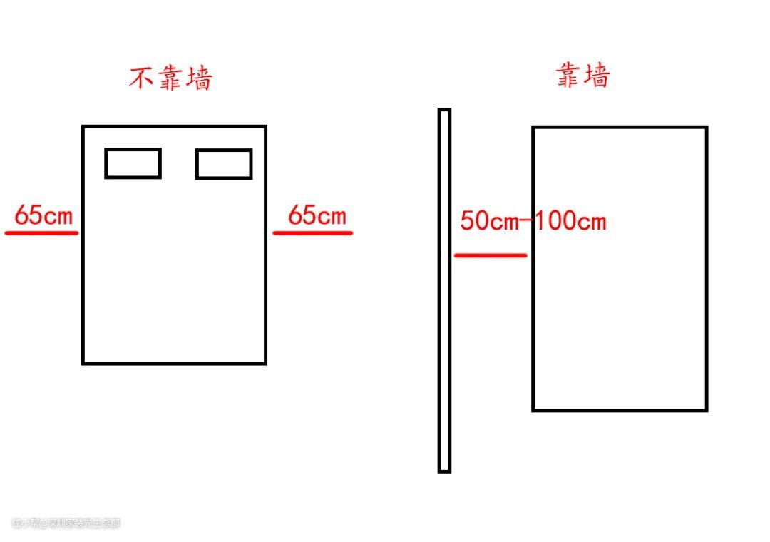 如果有一侧靠墙,靠墙的一侧要留50~100cm,方便铺床。
