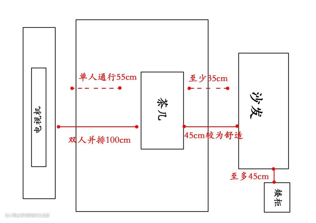 茶几与沙发距离→至少留35cm左右,人可以放下双脚,如果是45cm左右的话就可以舒适的伸腿啦~
